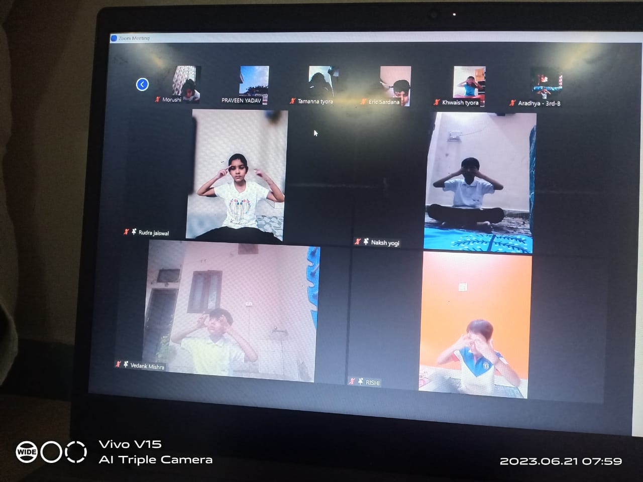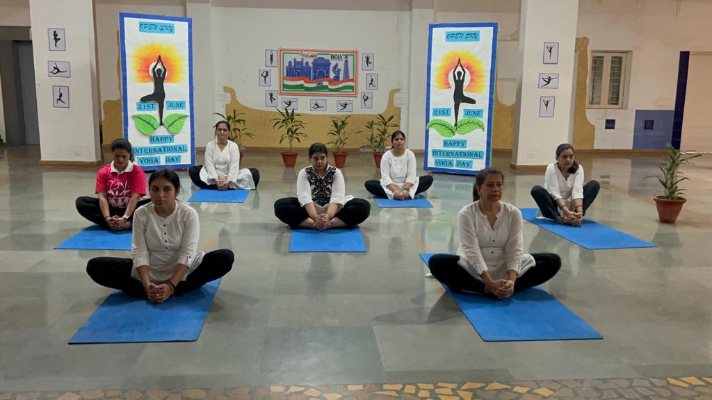 Open Sky Celebrated International Yoga Day with Virtual Unity and Serenity The students of Open Sky embraced a virtual celebration of International Yoga Day on 21 st June, 2023 uniting through screens to promote physical and mental well-being. With creativity and adaptability, Open Sky organized an engaging event that allowed students to experience the transformative power of yoga from the comfort of their own homes. The virtual gathering commenced with a brief introduction about the benefits of yoga. Led by sports instructor and yoga club members, the virtual yoga session began with warm up exercises and gentle stretching exercises to release any tension. Students were then guided through a series of asanas (poses), carefuny designed to promote strength, flexibility, and balance. The instructors provided clear instructions ensuring that students of all skill levels could participate and benefit from the practice. The guided meditation portion of the session allowed students to connect with their inner selves, cultivating a sense of calm and focus. The event conciuded with students encouraged to continue incorporating the principles of yoga into their daily lives.