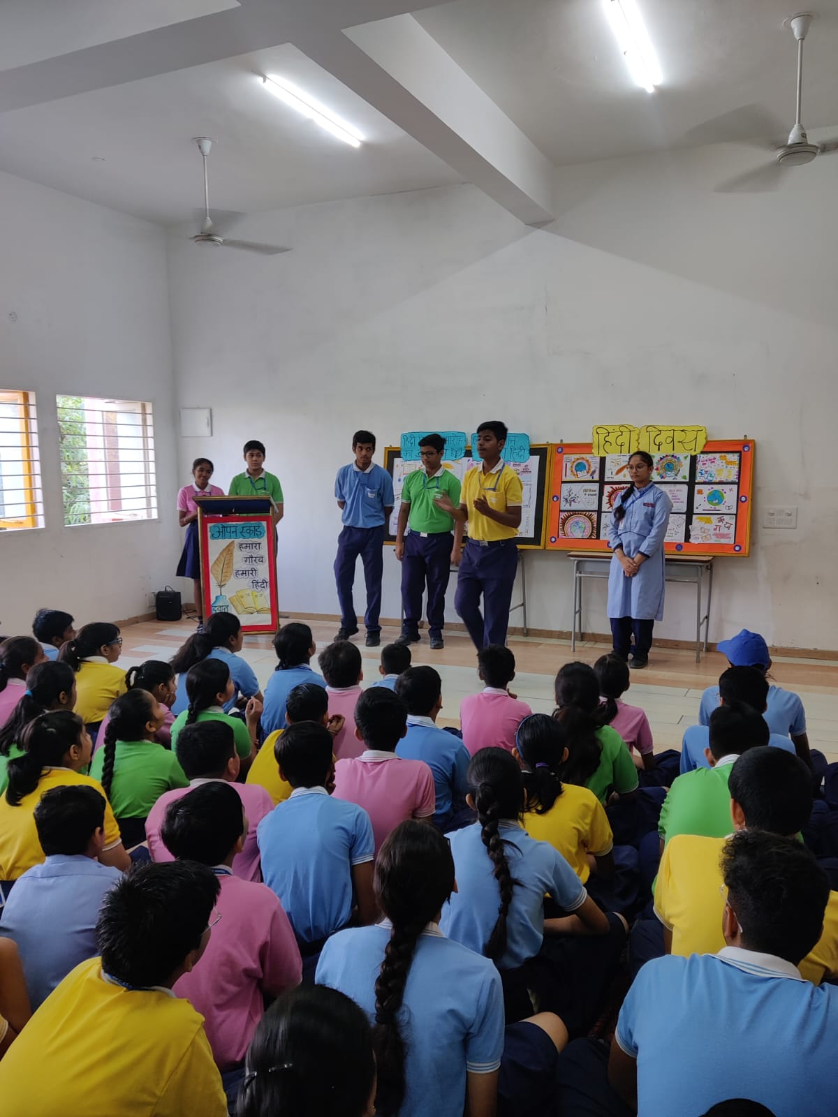 Students participated in various activities like Nukkad natak, muhavaron ka khel activity, doha gayan, kavita gayan , debate. Children also designed thought- provoking and beautiful posters , slogans.